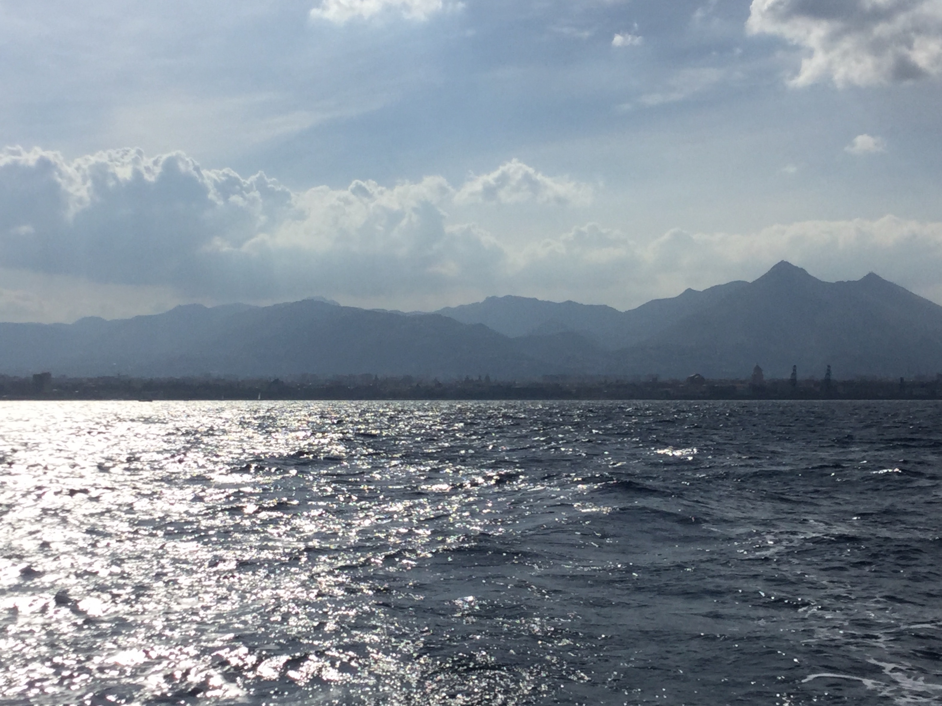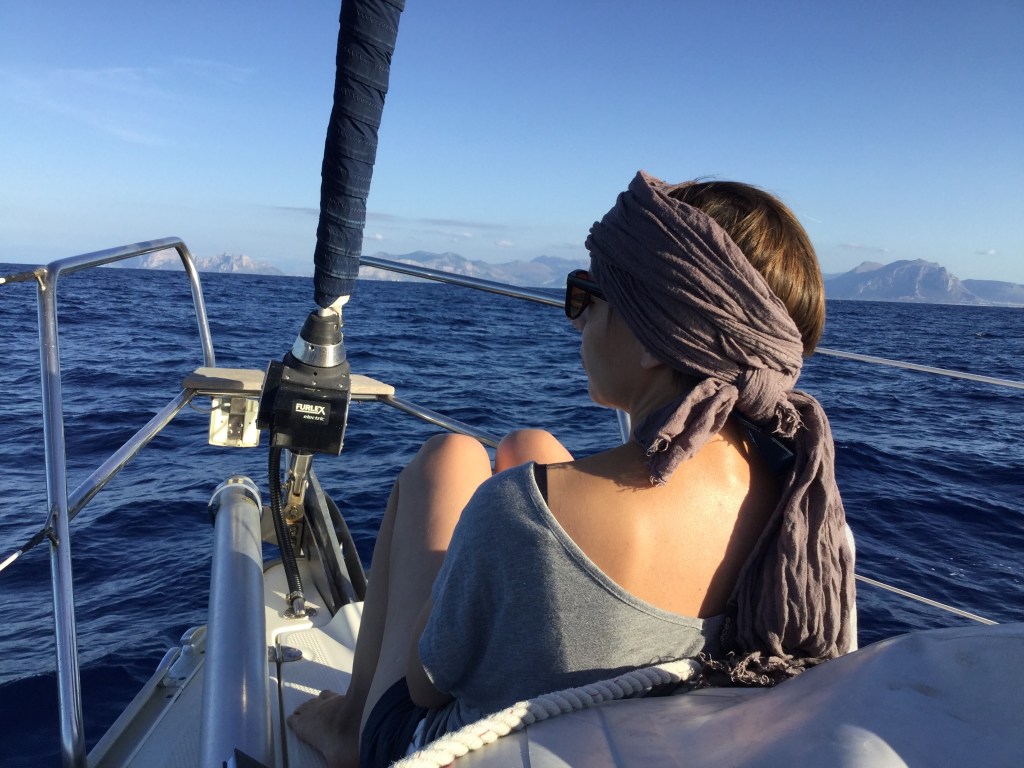 Kävimme läpi matkareittiä ja kävi selväksi, että alkuperäinen suunnitelma klo 12 saapumisesta Palermoon ei toteudu. Olisimme perillä vasta illalla. Vaikka aaltoja oli, niin tuuli heikosti, joten menimme moottorilla lähestulkoon koko matkan; halusimme myös keritä Palermoon illallisaikaan.