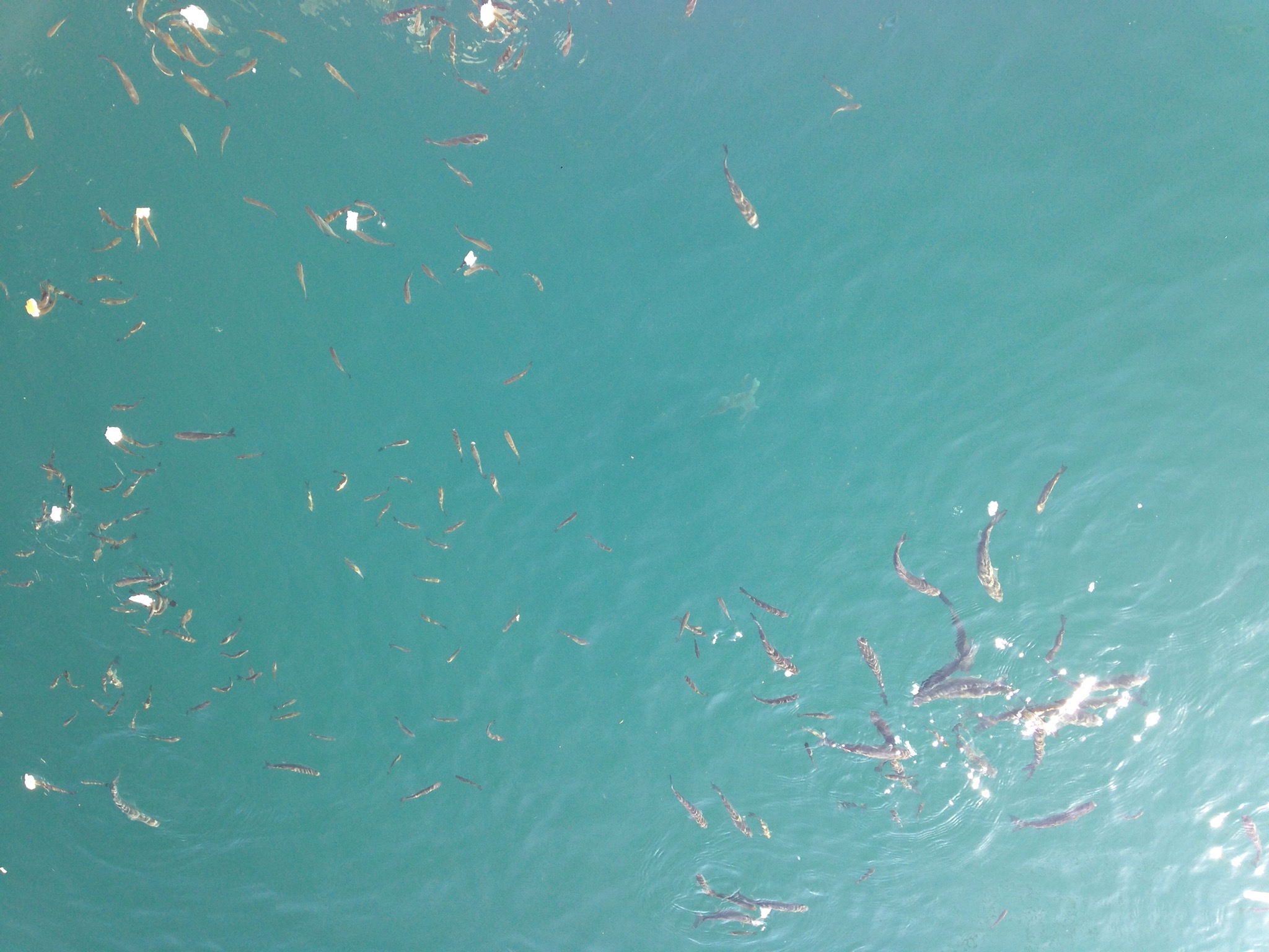 Toinen ehdoton venejuttu on kalat ja niiden ruokinta. (Tähän juttuun liittyy myös Huvikummun kannalta haasteellisia eettismoraalisia pulmia, kuten kohta selvinnee). Satamissa kalat saavat tuoretta, pehmeää leipää, jonka Kapteeni on jemmannut Huvikummulta ja Leidi Luovalta, ja säästänyt kaloille. (Mainittakoon tässä myös se, että leivän loppuminen tarkoittaa kirjaimellisesti sitä, että miehistön leipä loppuu, ei kalojen). Toinen tapa ruokkia kaloja on keskellä aavaa merta. Kapteenin käskystä kaloille ovat lentäneet appelsiinien kuoret ja aamukahvit, kapriksien tölkkiliemi ja jäätyneet salaatinlehdet. Pitkällä purjehduksella orgaanisen aineksen säilöminen kuumassa ja kosteassa veneessä on hankalaa. Tilaa on vähän ja roskat pakataan tiiviisti jokainen milli hyödyntäen: fantatölkeillä on oma taittamistekniikka, jogurttipurkit puristetaan sisäkkäin, vesipulloista otetaan ilma pois ja suljetaan korkilla, voipurkkiin säilötään pikkuroskia ja kansi suljetaan tiivisti kiinni, ennen kuin purkin voi heittää pois. (Kapteeni, huom! hyppää seuraavan lauseen yli). Huvikumpu yrittää kuitenkin uhmata käskyä ruokkia kaloja (ja näin ollen rehevöittää Välimerta), ja jemmailee kananmunankuoria ja teepusseja pieniin koloihin roskiksen pohjalle.