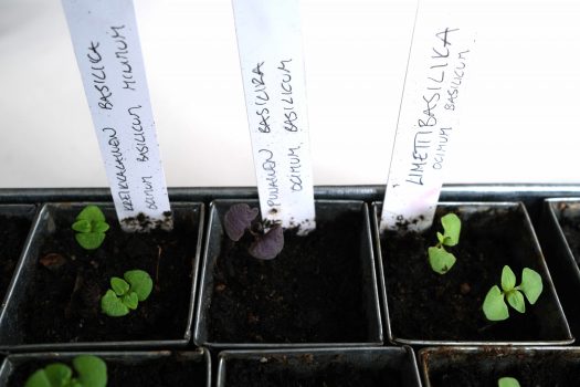 Yrteistä salvia, basilikat (kreikkalainen, punainen, limetti) ja timjami, ovat lähteneet kasvamaan. Mintut ja rakuuna eivät näytä vielä elonmerkkejä; ne ilmeisesti itävät pitkään.