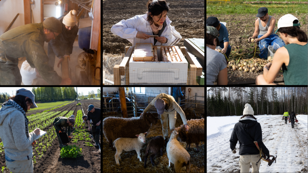 Olen osallistunut maatilatöihin eri vuodenaikoina. Olen valmistellut peltoaloja ja kasvipenkkejä, kylvänyt siemeniä ja istuttanut taimia, kitkenyt rikkaruohoja ja auttanut sadonkorjuussa. Olen tehnyt siemenlisäystä, ruokkinut eläimiä ja siivonnut navettoja. Olen levittänyt kompostia ja valmistanut lounasta maatilan työntekijöille. Olen ollut mukana jalostusprosesseissa ja kauppakunnostuksessa, pakannut ja jakanut satokasseja, kuljettanut ruokaa ravintoloihin sekä auttanut torimyynneissä.