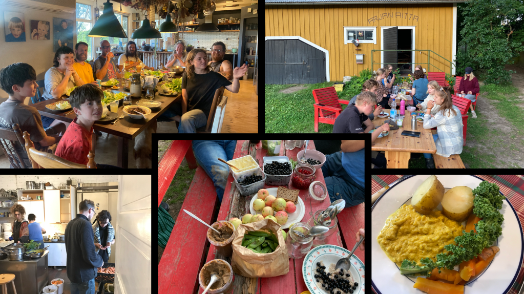 Yksi vastavuoroisuuden hienoimmista manifestaatioista on yhteiset lounaat, jotka valmistetaan maatilan ruuista. Monilla käymilläni tiloilla oli tapana tehdä ja syödä lounasta porukalla, ja paikalla olivat pääviljelijöiden lisäksi myös vapaaehtoiset työntekijät, tiloilla asuvat ihmiset, edellinen ja mahdollisesti tuleva viljelijäsukupolvi ja välillä myös muistivihkonsa kanssa pyörivät tutkijat.